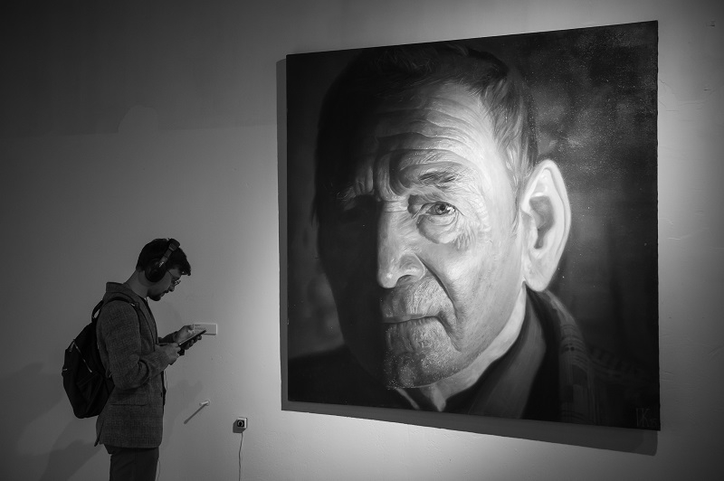 – Технически – это гиперреализм, я их фотографировал долго и с портретов срисовывал трехслойным методом живописи. Это как живопись 17 века – с гризайлью, с гравировкой. Возле всех портретов есть наушники, можно послушать, как каждый из них собственным голосом пересказывает историю своей жизни.