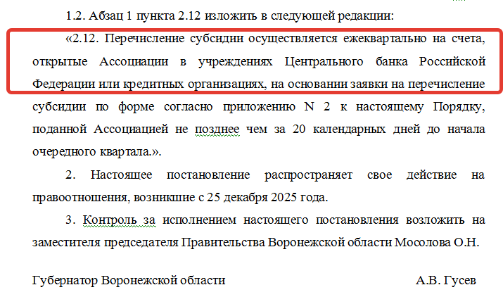 В проекте постановления сообщается, что изменения будут распространять свои действия на правоотношения, возникшие с 25 декабря 2025 года. Напомним, за неделю до этого срока были внесены поправки в облбюджет 2025 года, в том числе по финансированию АФК «Факел», расходы на команду за две недели до наступления Нового года были увеличены с 370 млн рублей до 540 млн. О чем ранее сообщал "Блокнот".