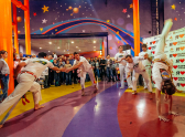 На прошлой неделе в Парке аттракционов Сити-парка «Град» прошел 5-часовой праздничный марафон. Парку уже четыре года. Поздравить его пришли 2,5 тысячи посетителей, среди гостей было семейство Градиков вместе с Микки и Минни Маусами. Организаторы праздника представили публике различные танцевальные номера бегемотиков, сказочных гномиков и чаек. Зрители также увидели захватывающее шоу мыльных пузырей и выступление мастеров школы боевых искусств капоэйра ABADÁ-Capoeira.