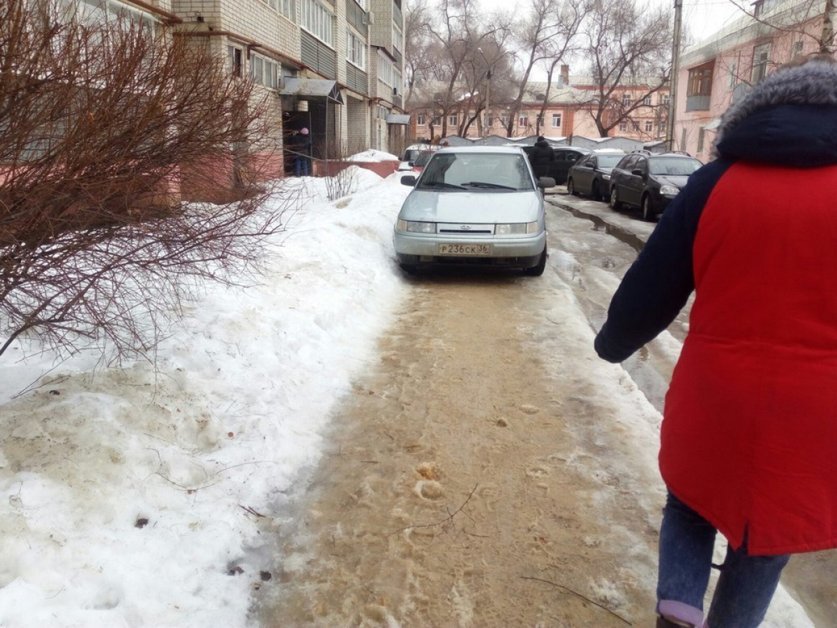 Варвара Панёвина – жительница Воронежа, опубликовала фотографию хамской парковки, сделанную на улице Карпинского, с подписью «Водитель припарковался на пешеходной дорожке зная, что улицы затопило, и пешеход может спокойно иди только по тротуару».