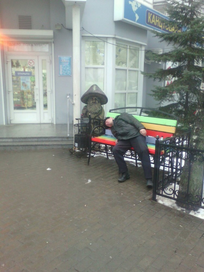 Житель Воронежа Алексей поделился с подписчиками популярной группы «Типичный Воронеж» снимком спящего на скамейке мужчины.