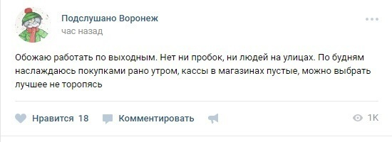 Житель Воронежа решил поделиться своим мнение по поводу того, что в выходные работать гораздо лучше, чем в будни. В этом он увидел целый ряд преимуществ.