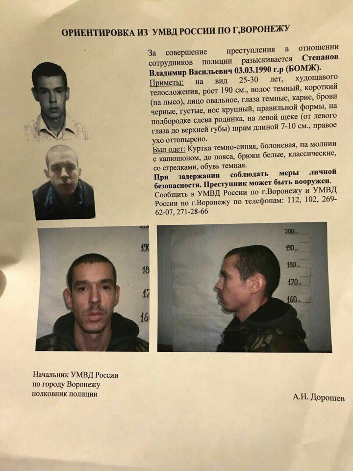 В Воронеже полицейские разыскивают Владимира Степанова 1990 года рождения. В соцсетях люди распространяют ориентировки и рассказывают, что в городе работают сотни правоохранителей.