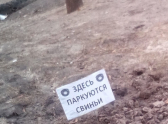 Чтобы автомобилисты прекратили парковаться на газоне у магазина «Персик» по улице Красных Зорь, люди оставили им послание: «Здесь паркуются свиньи». Местные жители решили проверить, посчитает ли себя кто-то из водителей розовым животным или нет. Как видно на фото, такое средство в войне за газон действенно — на запретной территории нет ни одной машины.
