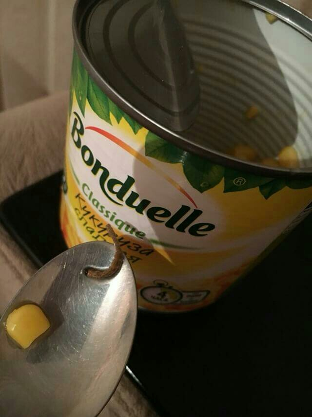Отталкивающую добавку к кукурузе горожанин обнаружил при открытии тары от крупной компании Bonduelle, выпускающая овощные консервы.