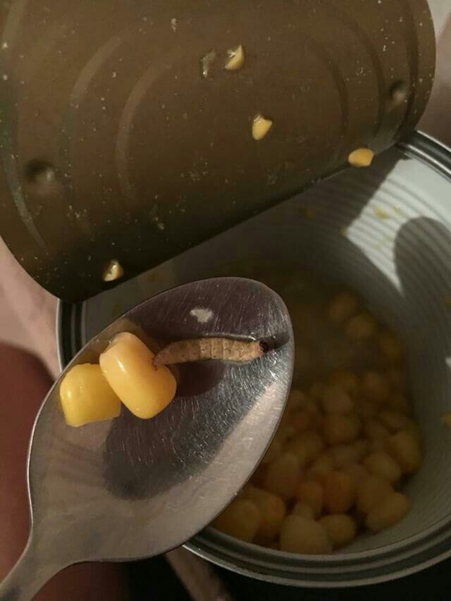 Воронежцы наткнулись на белые личинки в консерве с кукурузой