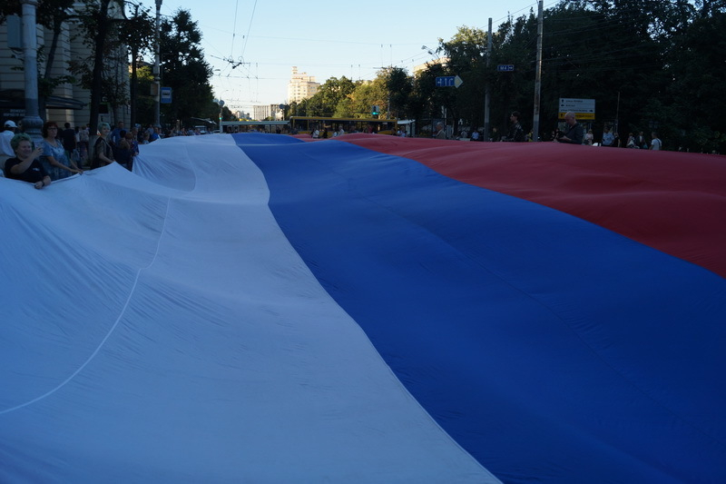 В День флага России, 22 августа, в Воронеже состоялась грандиозная акция. Около полусотни активистов пронесли по главной улице города, проспекту Революции, огромное полотнище. Оно было выполнено в виде российского триколора. Общественники шли с гигантским стягом от Петровского сквера до Никитинской площади.