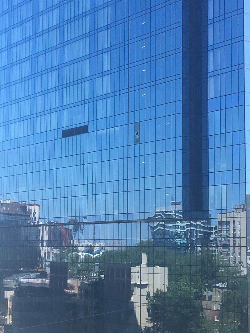 Однако наблюдательная местная жительница Алина отметила, что это вовсе не учение и в качестве доказательства опубликовала фото с дыркой в окне отеля.