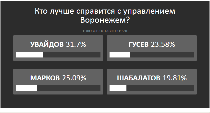 Вопрос портала «Блокнот Воронеж» звучал так: «Кто лучше справится с управлением Воронежем?»