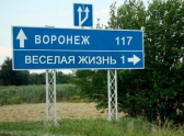 Жители Воронежа обсуждают фотографию указателя, на котором представлены два направления. Одно из них ведет в столицу Черноземья, а другое в населенный пункт под названием Веселая Жизнь.