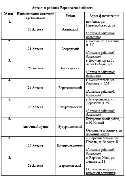 Публикуем список аптек с льготными лекарствами в Воронежской области