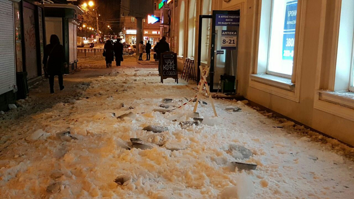В раздел нашего издания «Народный репортер» читатель прислал возмущенное сообщение. Было указано, что коммунальщики создали в центре Воронежа настоящий «ледяной ад». Виной этому стало безответственное отношение к своей работе. Коммунальщики, дескать, почистили крышу от наледи на улице Кольцовской, 52, и вся она осталась лежать на пешеходной дорожке, где ходят люди.