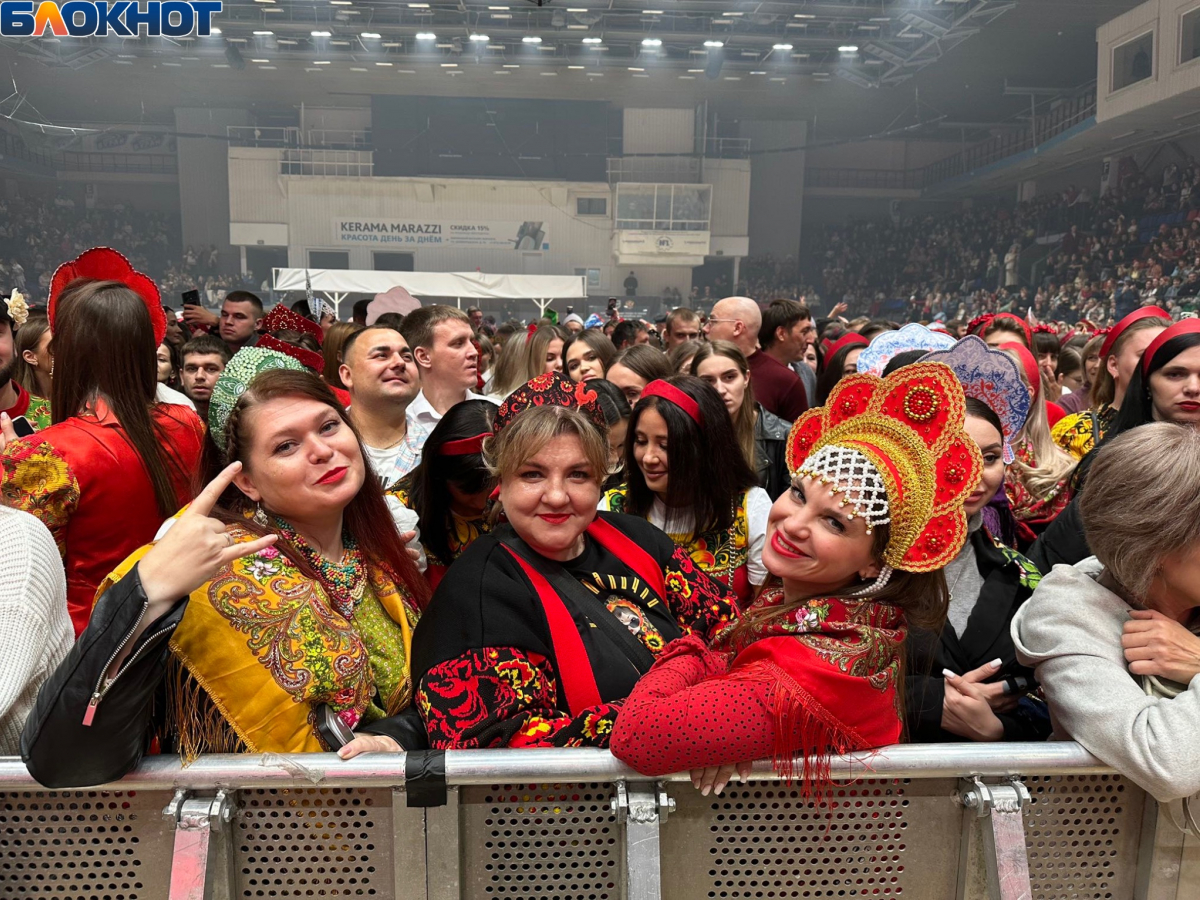 Ведь вместе с певицей на сцену вышел её сын - Григорий. Публика готовилась к празднику русской души - и, действительно, зал пел и плясал ещё до начала концерта. Среди зрителей можно было увидеть множество кокошников, расшитых платков, да и мужчин в русских народных костюмах оказалось немало.