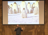 Юрий Мизин, выпускник Воронежского государственного университета, с 1999 года изучает Антарктиду. За это время он принял участие в ряде экспедиций, где занимался мониторингом колоний морских птиц и тюленей, а также учетом пингвинов Адели и императорских пингвинов на архипелаге Хасуэлл. В презентации «Путешествие в сказочную страну» полярник рассказал о пингвинах и других обитателях континента: как создают пары, выхаживают потомство и реагируют на присутствие людей. Сопровождалась презентация уникальными кадрами, сделанными во время экспедиций. Отдельное внимание полярник уделил условиям работы и повседневной жизни в экстремальном климате.