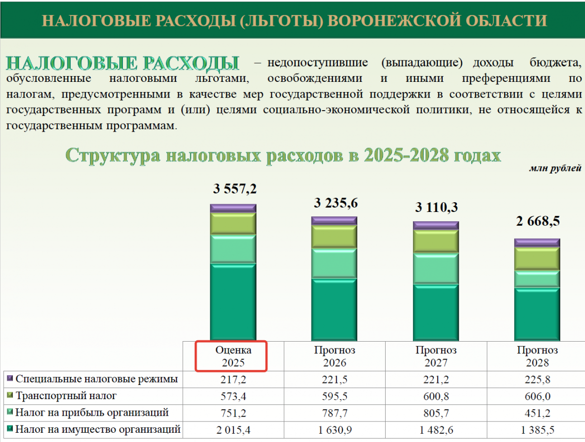 По прогнозам областного минфина, в будущем году предполагается в целом снижение налоговых расходов (льгот) примерно на 300 млн рублей. Это может произойти за счет сокращения льгот по налогу на имущество организаций, но в то же время могут чуть увеличиться размеры льгот по транспортному налогу и налога на прибыль организаций.
