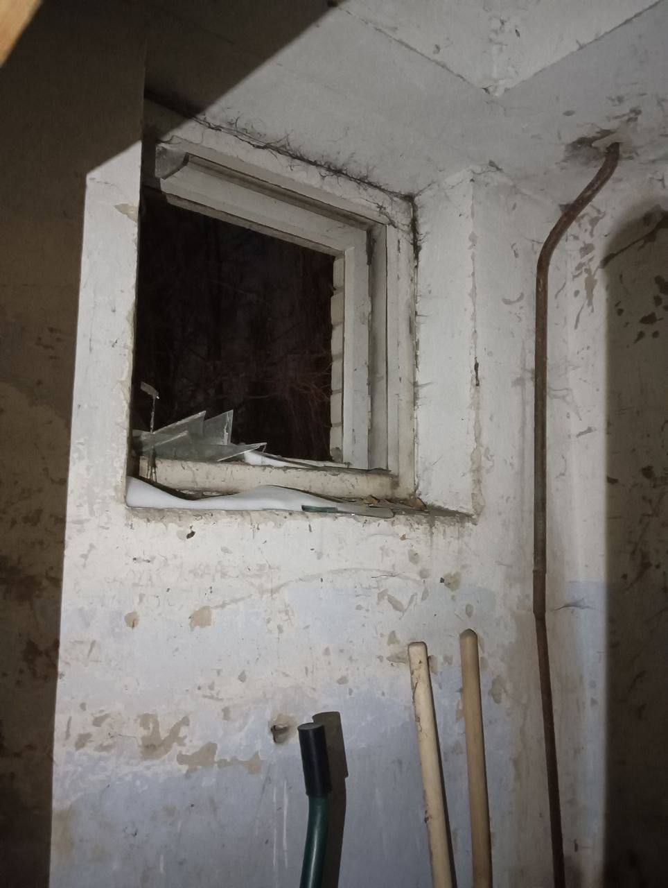 Одна из дверей в подъезде ведет в подсобку, доступ к которой есть у жильцов. Именно там уже долгое время остается разбитое окно.