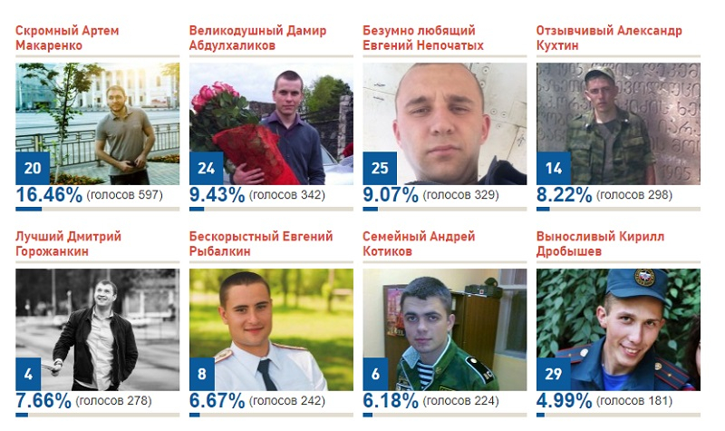 С 10:00 22 февраля до 10:00 23 февраля на портале «Блокнот Воронеж» проходило голосование в конкурсе «Настоящий мужчина». За это звание боролись 37 прекрасных жителей Воронежа. Все «накрученные» голоса были сняты нашими системными администраторами. Причем в этот раз наши участники отличись особенно: некоторые накрутили больше 1000 голосов за два часа. В итоге список победителей выглядит следующим образом: