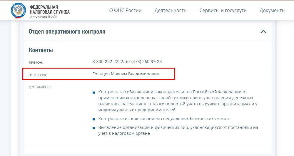 Согласно данным официального сайта ФНС России, должность начальник отдела оперативного контроля МИ ФНС России № 17 по Воронежской области занимает Максим Гольцов.