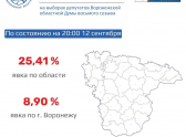 Явка по области составила 25,41 %, в Воронеже – 8,90 %.