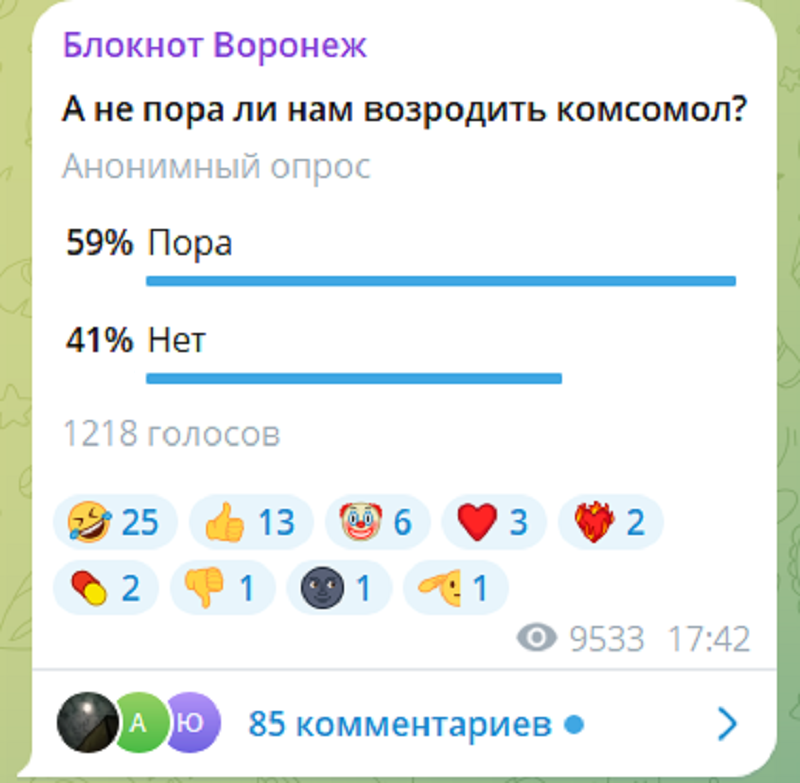А вариант «вернуть» в итоге победил. За – 59%, против – 41%. В опросе приняли участие 1218 подписчиков.