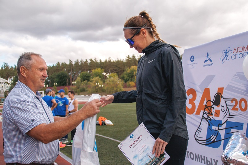 Памятные медали и футболки получили все участники мероприятия. Победители и призеры, попавшие в тройку лидеров, получили грамоты и памятные сувениры. Организаторами забега выступили профком, отдел социального развития Нововоронежской АЭС.