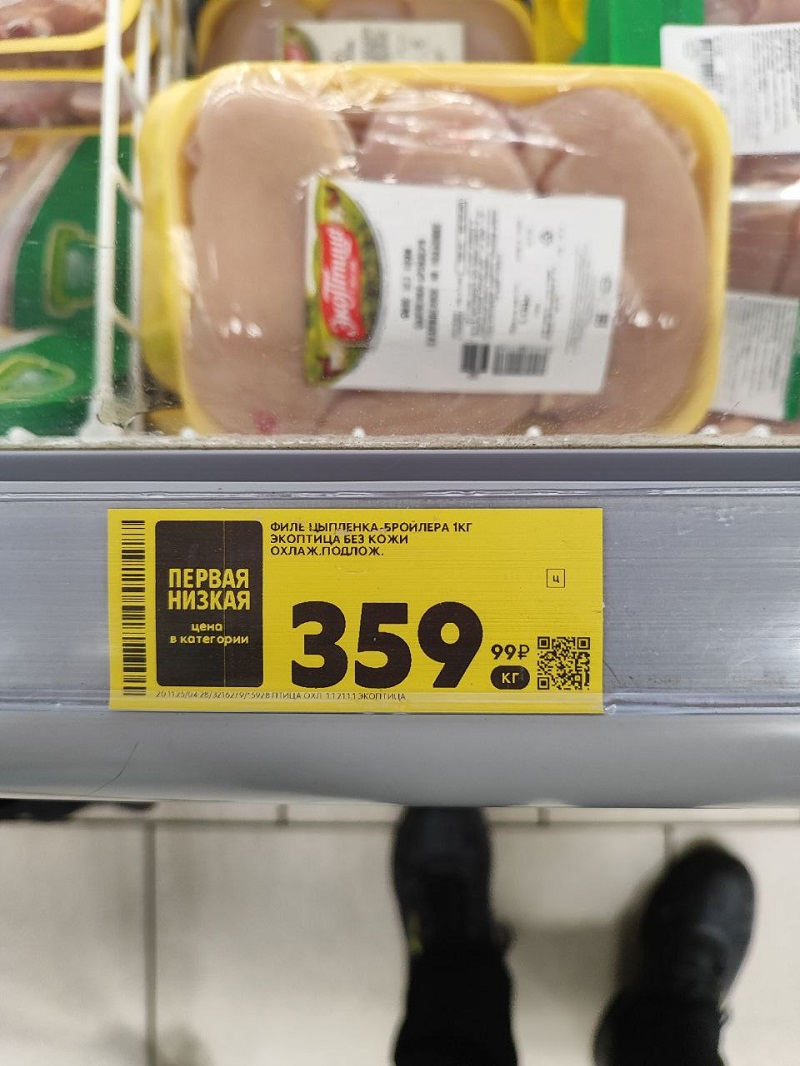 Стало: 359 рублей (филе цыпленка-бройлера, «Эко-птица)