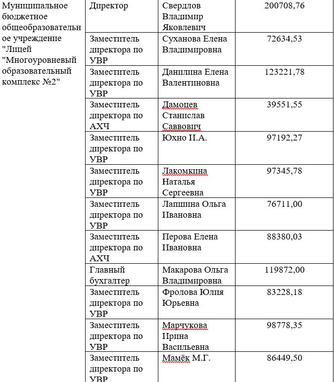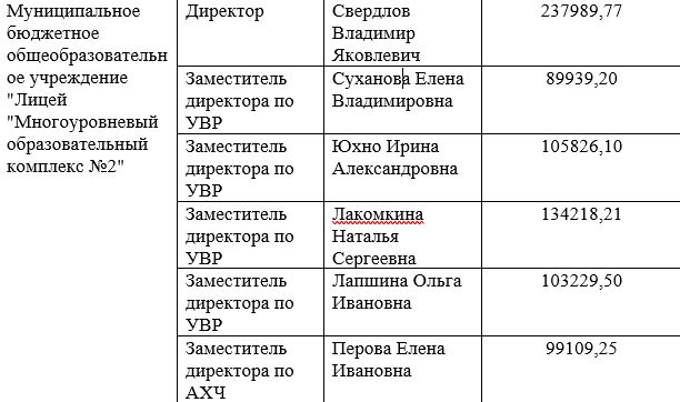 Последнее место в ТОП-5 занял директор «Многоуровневого образовательного комплекса №2» Владимир Свердлов. Его среднемесячная зарплата в 2025 году составляла 237 тыс. 989 рублей. То есть, за 12 месяцев руководитель образовательного учреждения получил около 2 млн 855,8 тыс. рублей.