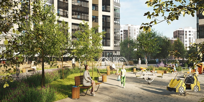 В центре комплекса - площадь с фонтаном. Она станет точкой притяжения жителей, а широкие бульвары с зонами отдыха превратят прогулки в удовольствие. Проект выгодно объединяет продуманные планировки, качественное благоустройство и передовые инженерные решения, создавая надежный фундамент для множества счастливых семейных историй будущих владельцев.