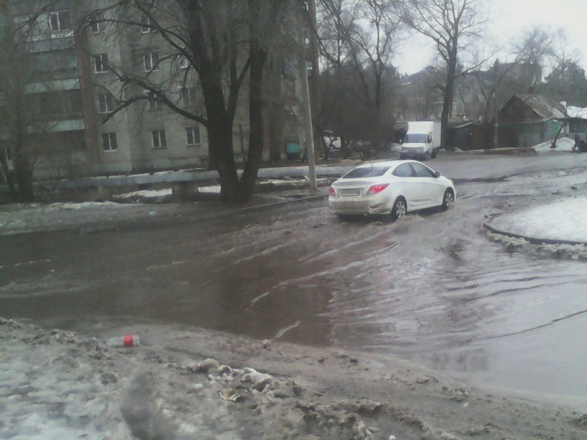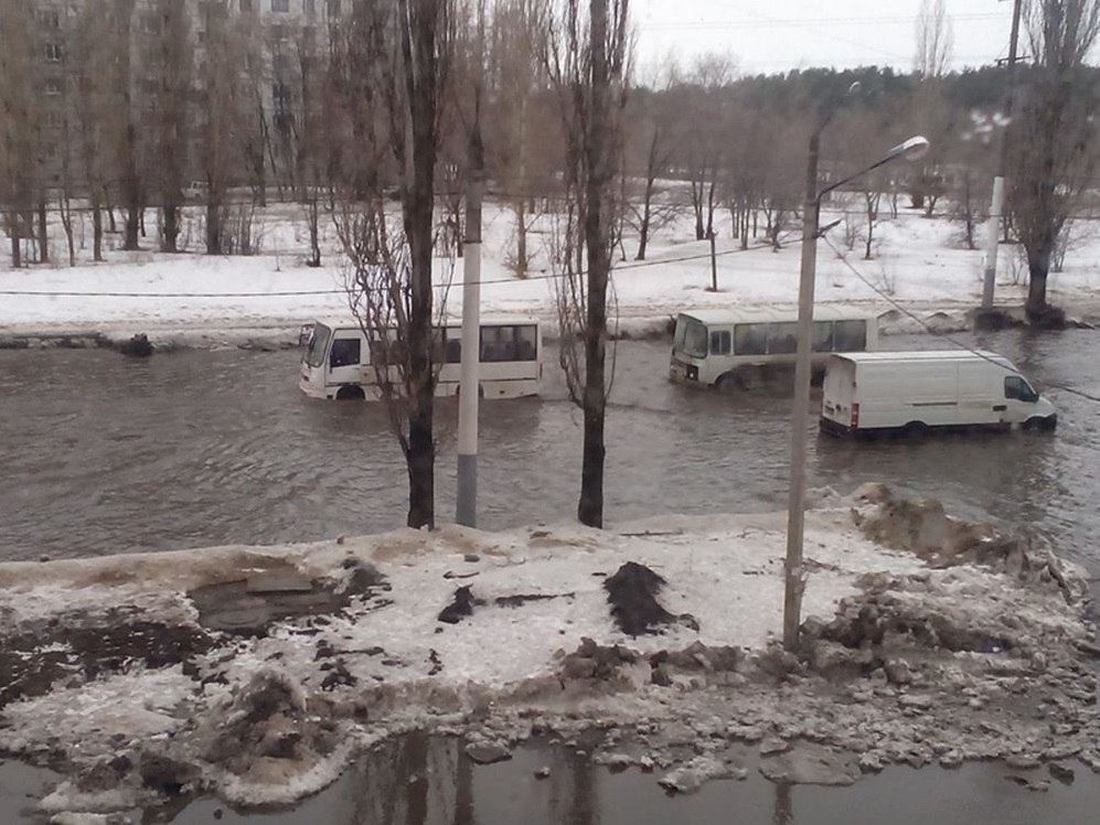 2 февраля в Воронеже настоящая оттепель, после того как столбик термометра показал +4 °С снег начал таять а воды прибывать на улицы нашего города. В результате, дороги превратились в реки, а машины в «лодки». Самое крупное наводнение произошло на улице Новосибирская, где даже машина упала в лужу.