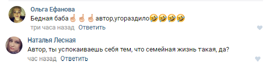 В свою очередь, в комментариях под публикацией девушки проявили солидарность и пожалели автора публикации: «Бедная баба», «Ну что сказать, автору сильно не повезло с мужем».