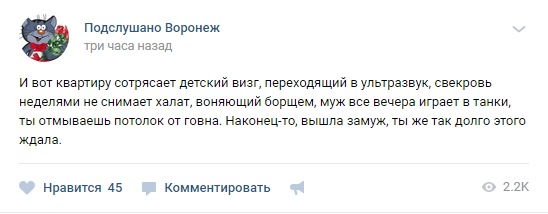 А воронежский мужчина и вовсе заявил, что такое положение вещей - константа для людей, состоящих в браке.