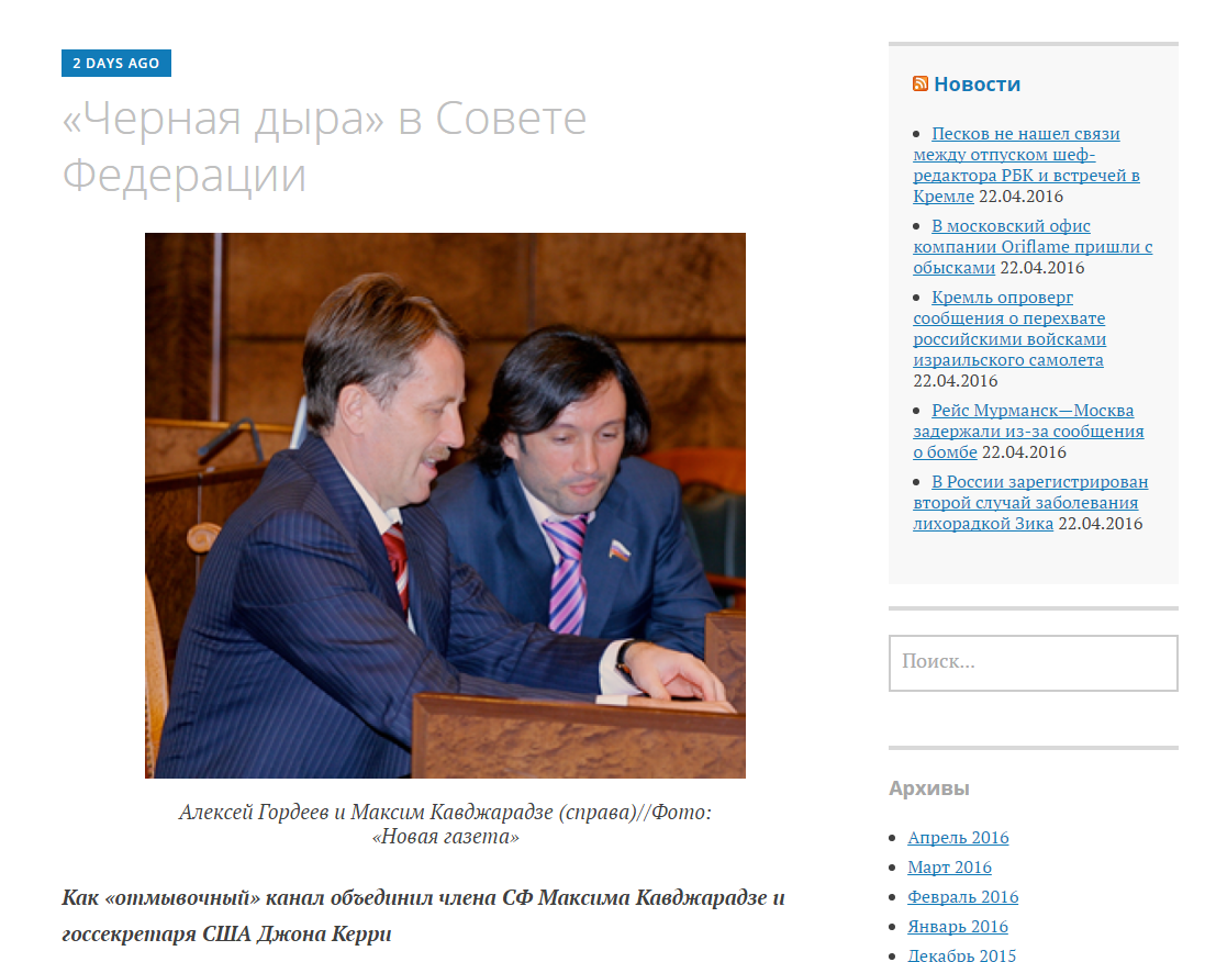 В значительной части своих выступлений сенатор делает отсылки к тому, как все замечательно в США, - отмечает издание. И не находит в этом ничего удивительного: «фирма, являющаяся совладельцем подконтрольных Кавджарадзе компаний, зарегистрирована в этой стране, а близкий друг Кавджарадзе, находящийся в розыске теневой банкир Джумбер Элбакидзе, и вовсе долгое время работал советником Джона Керри».